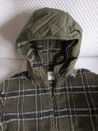 Sudadera con capucha y estampado de cuadros. Es talla Xs pero vale perfectamente para una talla S.puesta máximo 2veces.la capucha no sé quita está unida .ENVIO INPOST - Diseño acolchado en capucha y bolsillo. - Tejido tipo borreguito. - Media cremallera en el cuello.