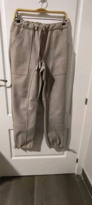 Pantalón de invierno de Zara, sin estrenar. - Color beige. - Diseño moderno con bolsillos. - Cintura con cordón ajustable. - Bajo ajustable con cordón El pantalón se estrechó un poco de ancho , aunque sigue quedando ancho y muy bonito. Muy cómodo y calentito. El pantalón está sin estrenar Es una 36 , pero da talla hasta la 38