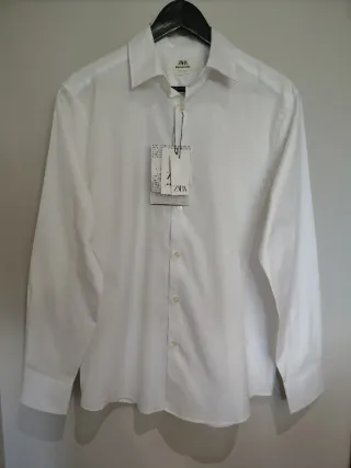 Camisa de vestir blanca de Zara, modelo Man Sartorial. Completamente nueva y con ticket. MEDIDAS Largo 80 cm Hombros 47 cm Material: 100% Algodón Se vende porque no la devolví en su momento y no me sirve de talla.