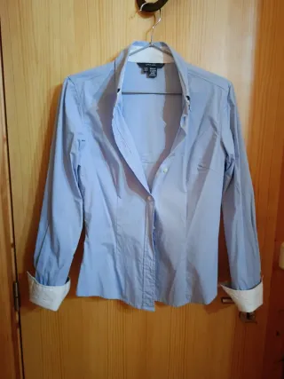 - Camisa de manga larga con cuello camisero y puños blancos. - Corte entallado. - Algodón y elastano para un mejor ajuste y comodidad. - Diseño entallado. - Cierre de botones. - Tejido ligero.