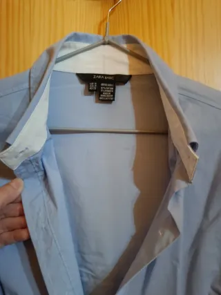 Chaqueta larga de la marca Zara, con un diseño elegante y moderno. - Tejido con textura. - Cierre de dos botones. - Dos bolsillos frontales con solapa. - Cuello solapa clásico. Tiene una pequeña mancha en la parte trasera de una manga, queda por detrás y se suele llevar con los puños remangados, ya que es de primavera/verano.