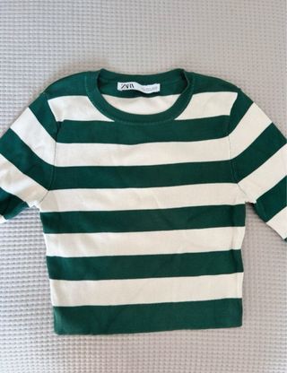 Prenda de punto con diseño de rayas horizontales. - Diseño de rayas verdes y blancas. - Cuello redondo.