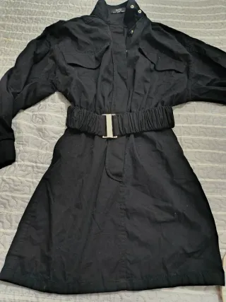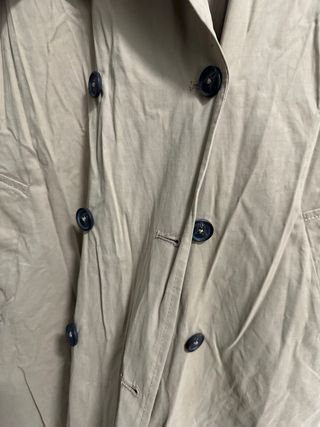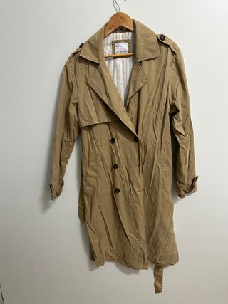 Gabardina ligera de la marca Bershka. - Diseño clásico. - Cierre de botones. - Cinturón para ajustar. - Bolsillos frontales.
