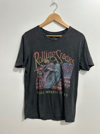 Camiseta de The Rolling Stones con diseño del Steel Wheels Tour 89. - Estampado frontal con el logo de la banda y la bandera estadounidense. - Cuello redondo y manga corta. - Tejido de algodón con acabado desgastado.