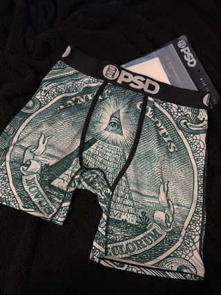 Boxers de la marca PSD con un diseño inspirado en el billete de un dólar. - Cintura elástica con logo. - Diseño detallado en verde y blanco. - Tejido cómodo para el día a día.