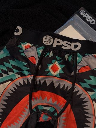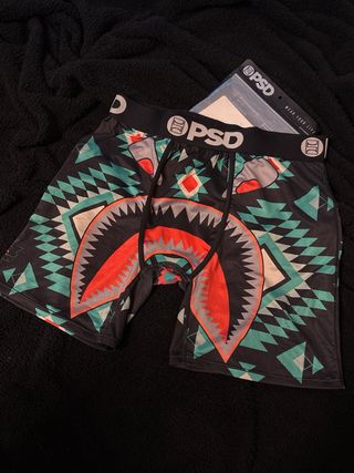 Boxers de la marca PSD con un diseño llamativo. - Estampado tribal con motivo de tiburón. - Cintura elástica con logo. - Tejido cómodo y transpirable.