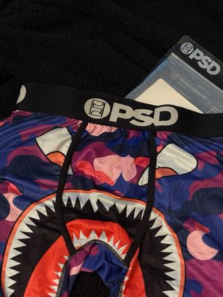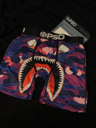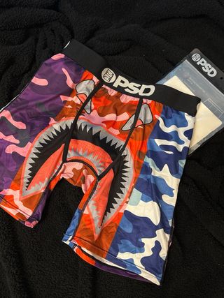 Boxers de la marca PSD con un diseño llamativo de camuflaje y tiburón. - Cintura elástica con logo. - Tejido transpirable. - Diseño dividido en paneles de camuflaje.