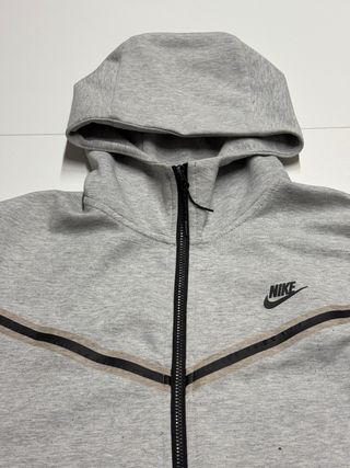 Chaqueta Nike Tech Fleece en color gris. Diseño moderno y cómodo. - Cremallera frontal completa. - Capucha con cordones ajustables. - Bolsillos laterales. - Detalle de líneas en contraste en el pecho. - Bolsillo con cremallera en la manga.