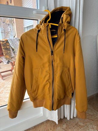 Chaqueta de hombre con capucha y cremallera. Como nueva, usada solo 2-3 veces. - Color mostaza. - Diseño moderno.