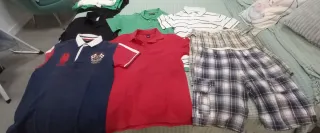 Lote de ropa variada. - Camisas tipo polo de manga corta. - Bermudas de cuadros. La descripción de Las marcas y las tallas en las fotos .
