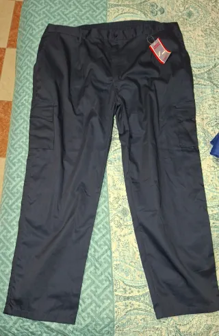 Pantalon de trabajo azul marino. Con bolsillos laterales. Sin reflectante Talla 64 Fabricado por Confecciones Candi 65%Poliester / 35%Algodon Se dispone de 2 unidades. Precio por unidad.