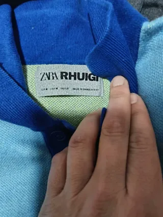 Polo de la colaboración entre Zara y Rhuigi. Diseño moderno y llamativo. - Cuello tipo polo con botones. - Estampado grande en la parte delantera. - Detalle de logo en la manga.