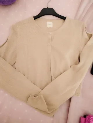 Chaqueta de la marca Pull and Bear en color beige. Diseño moderno y versátil. - Cuello alto acanalado. - Cierre de cremallera. - Puños y bajo elásticos. - Bolsillos frontales.