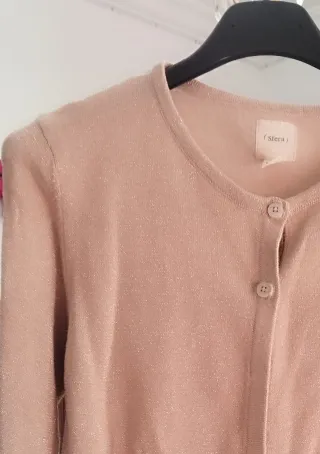 Rebeca de punto para niña con un toque dorado. - Cuello redondo. - Cierre de botones. - Manga larga.
