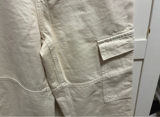 Pantalón tipo cargo de Mango en color beige.Diseño con múltiples bolsillos. Perfecto estado