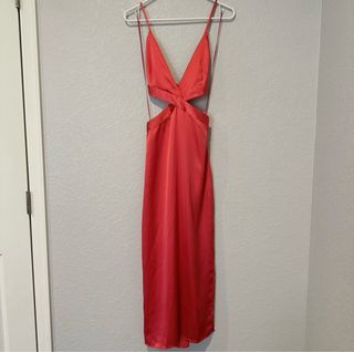 Vestido largo de Zara con un diseño moderno y elegante. Perfecto para graduación! Puesto solo una vez. - Corte cut-out en la cintura. - Tirantes finos cruzados en la espalda. - Tejido satinado. - Abertura lateral.