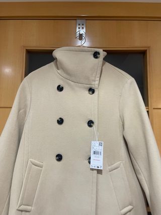 Abrigo largo de Zara, Manteco. 75% lana. Entallado, cruzado. Atemporal. Talla un poco más grande. - Diseño de doble botonadura. - Cuello de solapa. - Bolsillos frontales con solapa.
