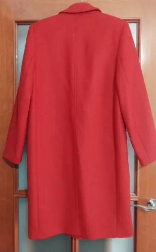 Elegante abrigo largo de Zara. Cuello chimenea, botones ocultos con solapa, entallado. Rojo clasico (apagado, frío) - Composición: 85% lana. - Diseño clásico y atemporal.