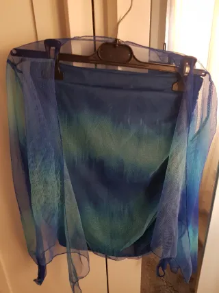 Falda de verano con un diseño degradado en tonos azules y verdes. La tela es ligera y vaporosa, ideal para los días cálidos. - Diseño degradado. - Tejido ligero y vaporoso.