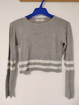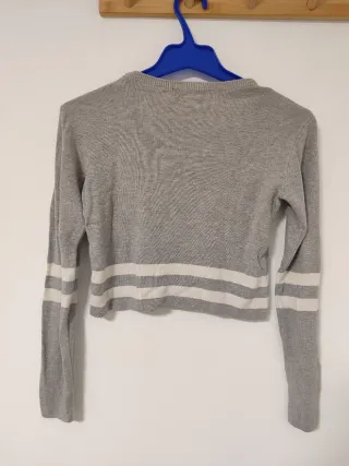 Jersey / suéter de pelo suave Tiene hombros descubiertos pero no pasas frío Es muy suave con la piel Talla xs pero se puede llevar siendo S e incluso da más de sí, se ajusta Está perfectamente conservado