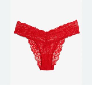 Prenda íntima de encaje con un diseño delicado y femenino. - Material: Encaje. - Color: Rojo.