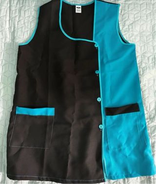 Prenda de ropa de trabajo con un diseño bicolor. - Cierre con botones. - Ribete de contraste. Las batas para maestras son una prenda fundamental en escuelas, colegios, guarderías y ludotecas, etc. ya que no sólo protegen de las manchas, sino que aportan una imagen profesional necesaria en cualquier centro. Talla M-L Hay 3 colores , la misma talla