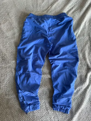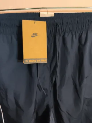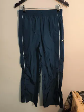 Pantalones deportivos Nike de color azul. - Diseño impermeable. - Cintura elástica con cordón. - Detalle de ribete blanco en los laterales. - Logo de Nike en la pierna derecha.