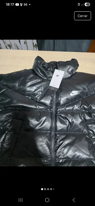Chaqueta acolchada con acabado brillante. - Diseño moderno y elegante. - Cremallera frontal. - Logo de Nike visible.
