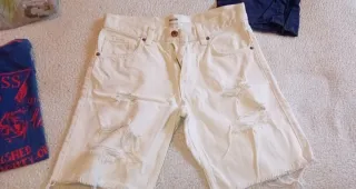 Todo lo q veas en las fotos por50€ Pantalones vaqueros tipo jogger de la marca Bershka. Son cómodos y con un diseño moderno. - Cintura elástica con cordón. - Lavado desgastado característico . Pantalón corto. Todo de la misma marca . Pantalón de chándal. . Sudadera de Ellesse . Vais blanca de bershka