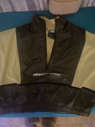Sudadera de Nike Sportswear con un diseño moderno y llamativo. - Combinación de colores verde y amarillo. - Cremallera frontal parcial. - Puños y cintura elásticos.