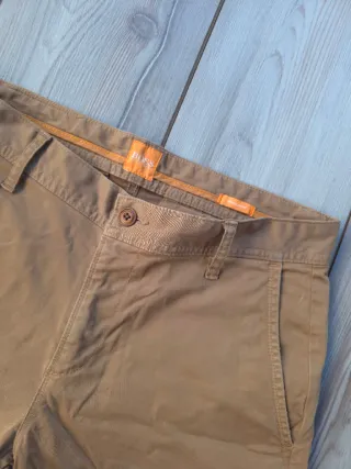 Elegante pantalón chino de la firma Hugo Boss, confeccionado en algodón de alta calidad con un corte recto clásico. El tono marrón tierra lo convierte en una prenda versátil y atemporal, perfecta para looks casuales con un aire sofisticado. Una pieza que refleja la elegancia y el diseño característico de la marca alemana. ✔ Talla: M (Largo:98cm, Ancho:40) ✔ Color: Marrón tierra ✔ Material: Algodón de alta calidad ✔ Estado: Muy bueno ✔ Detalles: Corte recto, cierre con botón y cremallera, bolsillos laterales y traseros, etiqueta interior Hugo Boss Ideal para quienes buscan un pantalón de marca premium, cómodo y combinable