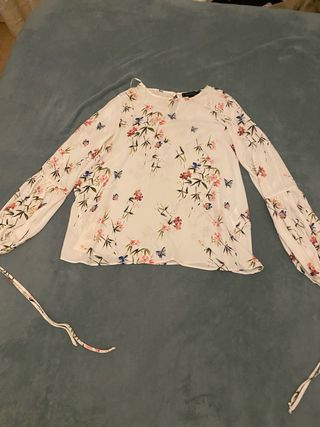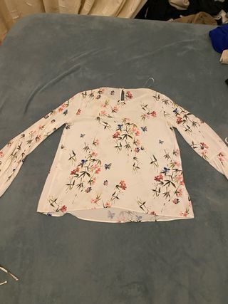 Blusa de manga larga con un bonito estampado de flores y mariposas. - Diseño con cuello redondo. - Mangas acampanadas con detalle. - Tejido ligero y fluido.