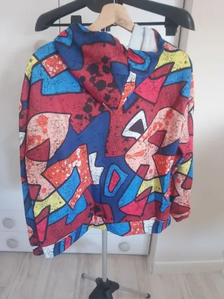 Sudadera con capucha con un diseño vibrante y llamativo. Estampado multicolor. Capucha con cordones. Medidas aproximadas: Largo 65 cm Sisa 60 cm