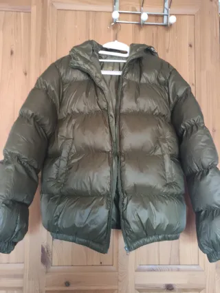 Chaqueta acolchada de estilo plumífero. - Diseño con capucha - Cierre de cremallera frontal - Bolsillos laterales En perfecto estado y sin usar, supuestamente es una XL pero no es verdad como mucho una L o M Muy ligerita y suave pero no me vale Tengo otra chaqueta de borreeguillo que si te llevas las dos te puedo hacer precio