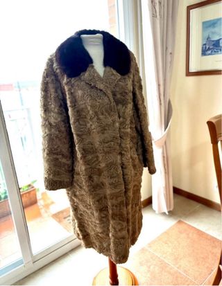 Abrigo de pelo sintético con capucha. - Cierre de botones. - Bolsillos laterales.