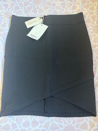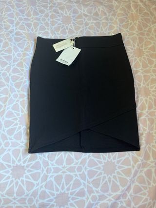 Falda de Stradivarius en color negro. Diseño moderno y elegante. - Corte asimétrico. - Tejido cómodo y adaptable.