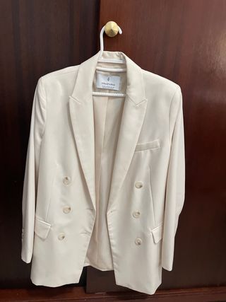 Blazer de Stradivarius con un corte oversize. - Diseño de doble botonadura. - Solapas clásicas. - Bolsillos frontales con solapa. -Hombreras. Es talla XS pero queda muy holgada