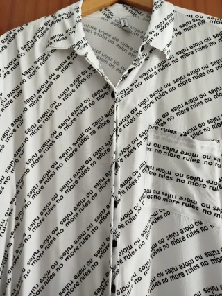 Camisa con estampado No More Rules en blanco. - Diseño con texto repetido. - Cuello camisero. - Cierre de botones.