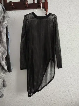 Camiseta larga transparente negra