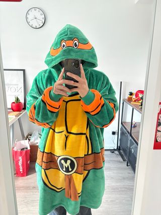 Cómoda batamanta con diseño de las Tortugas Ninja. Es perfecta para estar en casa, muy calentita. - Diseño inspirado en las Tortugas Ninja. - Tejido suave y cálido. - Talla L/XL (ver fotos) - Usada una vez
