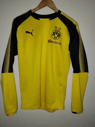 Sudadera del Borussia Dortmund con diseño deportivo. - Mangas largas. - Cuello redondo. - Logo de Puma y escudo del club. - Detalles de diseño en las mangas.