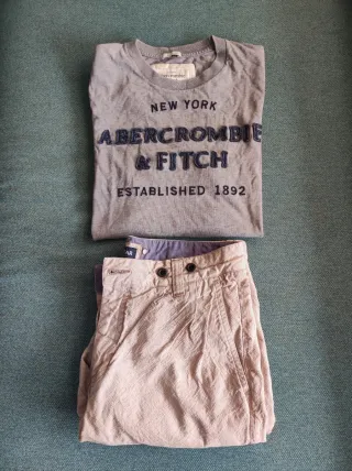 Conjunto de ropa de hombre - Camiseta de manga corta gris de Abercrombie & Fitch talla M. - Pantalón de vestir color beige con textura de Pull&Bear talla 42 El conjunto por 10€. Si solo está interesad@ en una de las prendas preguntar precio por privado.