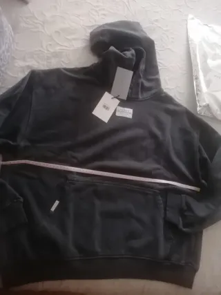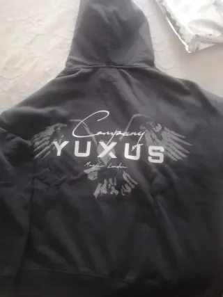 Sudadera con capucha de la marca Yuxus, con un diseño gráfico en la espalda. Según web daba poca talla, por lo que equivale a M oversize. Hay foto con medida. Tengo embalaje original de regalo. - Sin estrenar, con etiquetas. - Color negro. - Talla L