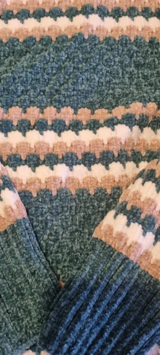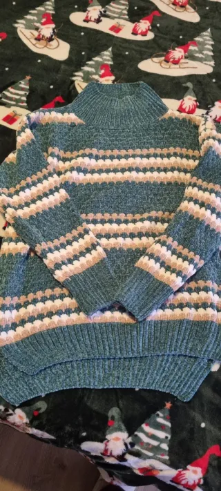 Jersey de punto con cuello alto y diseño de rayas horizontales en varios tonos. - Cuello alto acanalado. - Diseño de rayas en verde, beige y blanco. - Tejido suave y confortable.