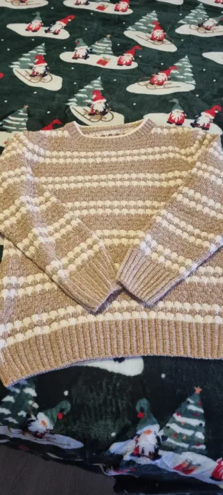 Jersey mujer beige y blanco