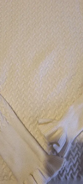 Jersey de punto para mujer con un diseño texturizado y cuello alto. - Manga larga con puños acampanados y volantes. - Cuello con detalle de volantes. - Tejido de punto con relieve.