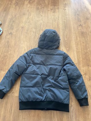 Chaqueta acolchada con un acabado brillante. - Diseño con capucha. - Cierre de cremallera. ( Necesita cambio de cremallera ) - Bolsillos laterales con cremallera.