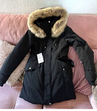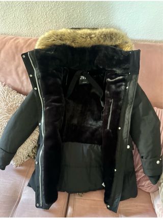 Chaqueta de invierno Zara, nueva sin estrenar. Cuenta con un diseño moderno y elegante. - Capucha con pelo sintético. - Cierre de cremallera y botones. - Bolsillos frontales con solapa. - Puños ajustables. -con etiqueta