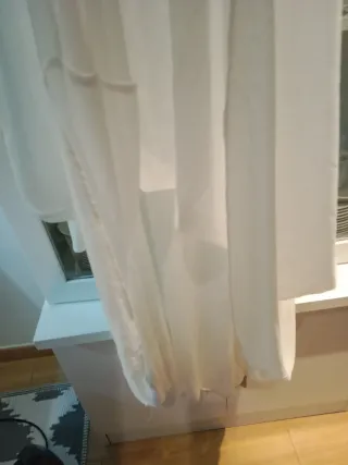 Vestido de comunión blanco, sin estrenar, con detalles de encaje y fajín. - Talla 8-9 años. - Cuello redondo. - Mangas cortas abullonadas. - Fajín de tela a juego.