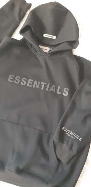 Sudadera con capucha de la marca ESSENTIALS en color negro. - Diseño con logo ESSENTIALS en el pecho. - Logo ESSENTIALS FEAR OF GOD en la manga. Nueva Da mucha talla...XXL